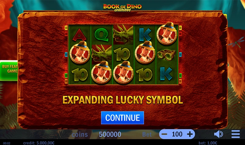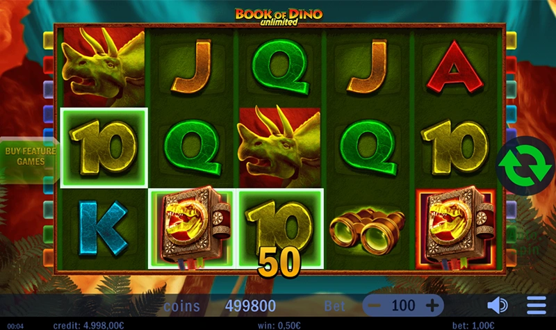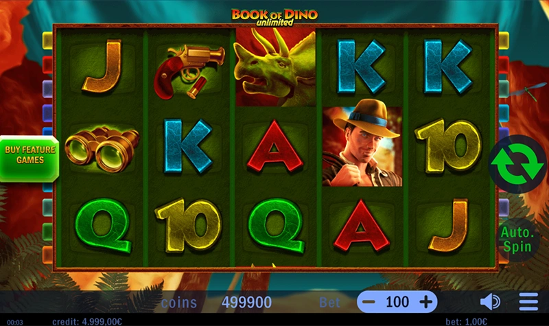 Step into a lost world of colossal creatures and ancient power. Book of Dino Unlimited combines the thrill of classic slots with the mystique of dinosaur legend. As you explore fossil-filled reels, each spin can bring roaring rewards — and the Book symbol is your key to unlock Free Spins and expanding riches.