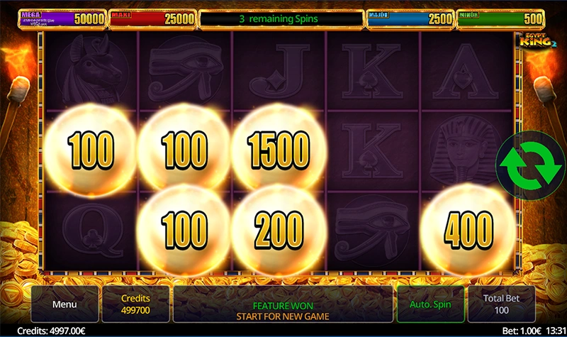 The Free Spins feature in Egypt King 2 is where the game truly shines. Once triggered, you’ll receive 10 Free Spins — and a special symbol is chosen at random to expand during the feature. These expanding symbols don’t need to land on adjacent reels to pay, making each spin full of potential.
