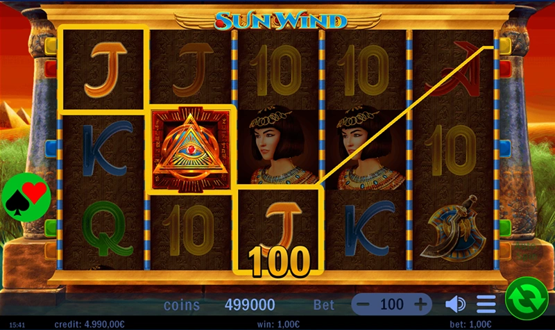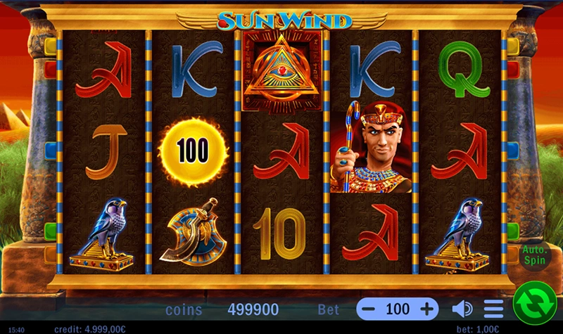 With its familiar structure and fiery visual theme, Sun Wind delivers a warm welcome to both new and experienced players. The sacred Book symbol acts as both Wild and Scatter, unlocking the road to the bonus round. Land 3 or more to trigger Free Spins with a randomly chosen expanding symbol, and prepare to chase heat-packed wins.
