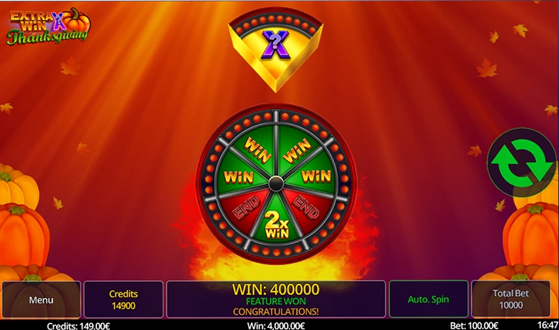 Get ready for festive excitement, warm autumn vibes, and thrilling opportunities for massive wins! Extra Win™ X Thanksgiving brings everything players love about classic slots — enhanced with the electrifying Extra Win™ X Feature.